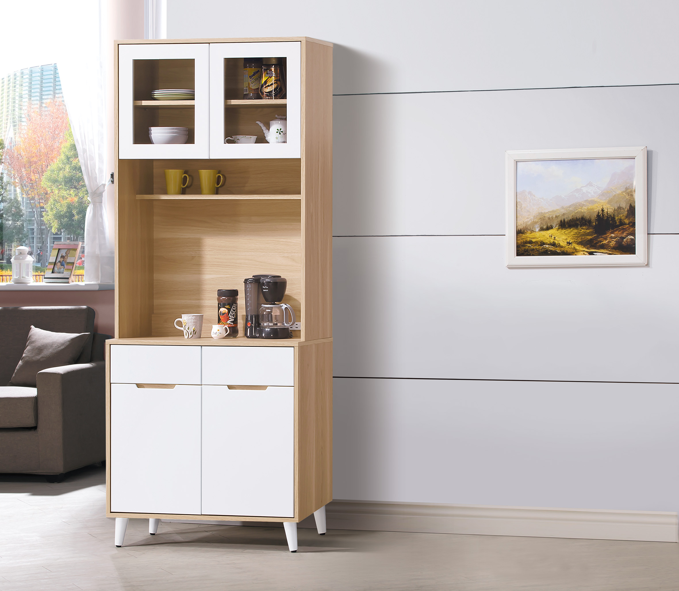 寬80深40高200 正面為環保紐西蘭MDF材質三層噴漆, 檯面.側面為木心板,PU耐磨塗裝, 木紋經特殊立體化處理.增添木紋立體美感, 抽屜鋼珠滑軌, 天然橡木實木腳座.三層噴漆處理 (腳高約12公分),美背, 台灣製造