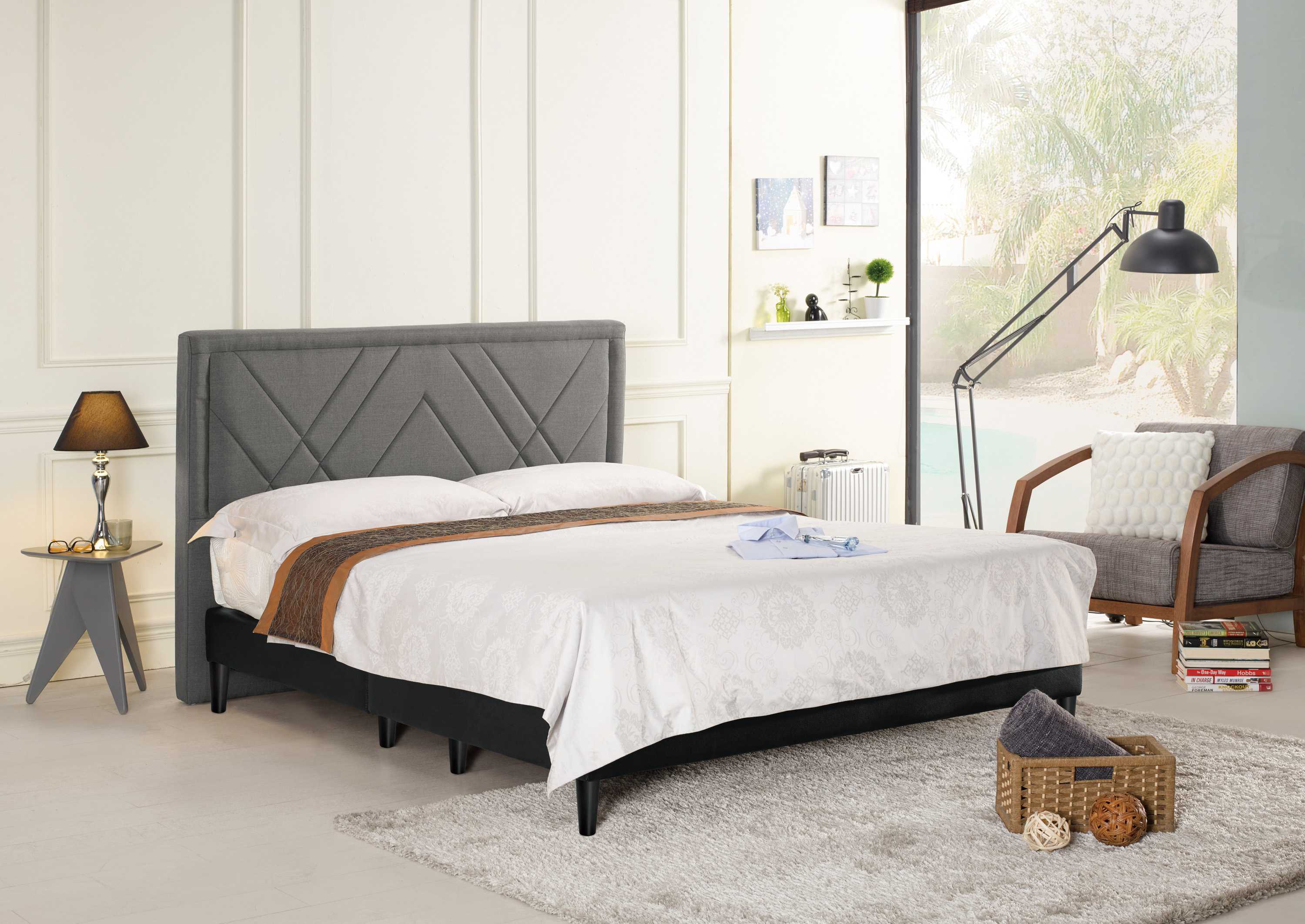 查爾6尺雙人床 (深灰布)