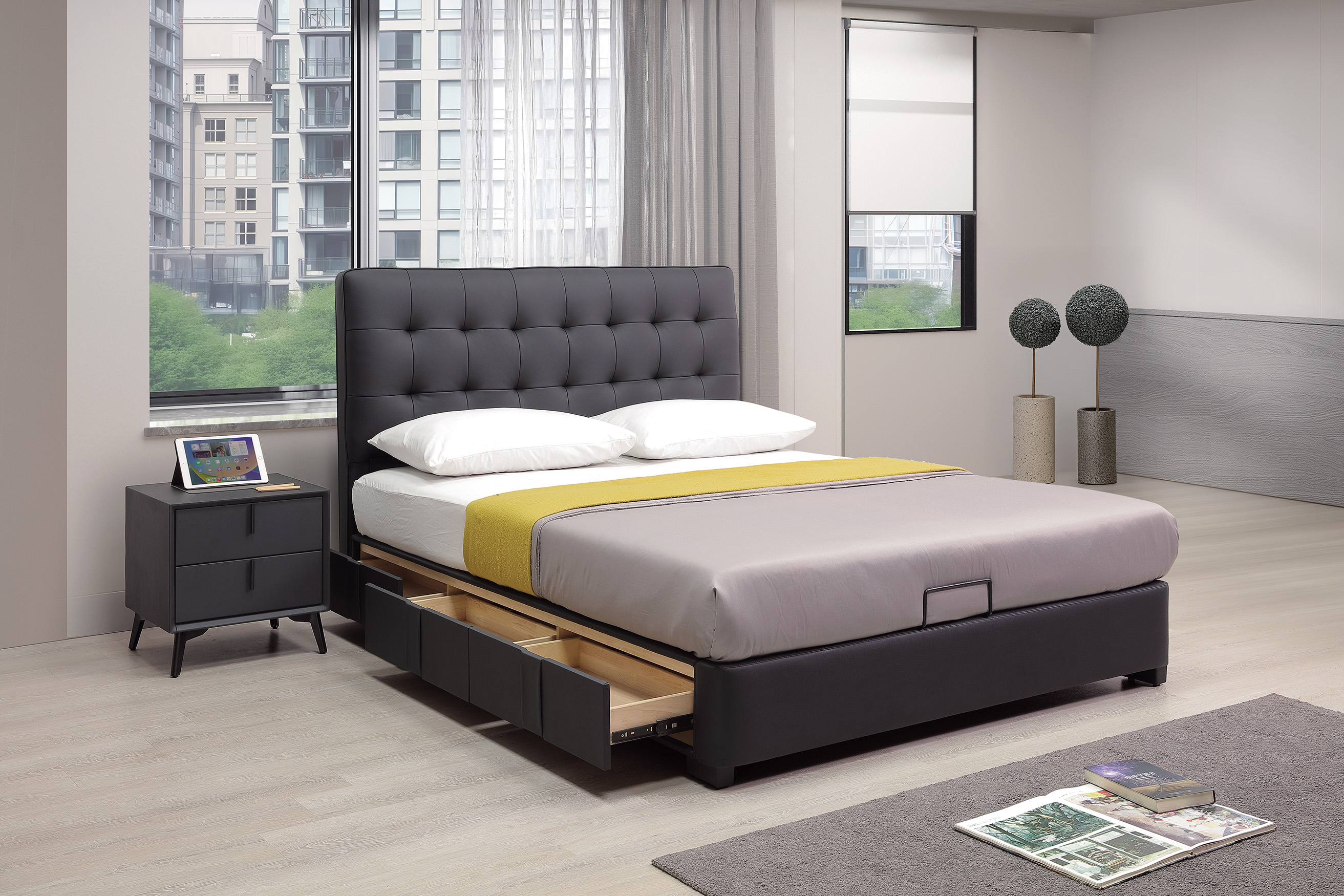 華格夫5尺半牛皮三抽床台 (面左抽)